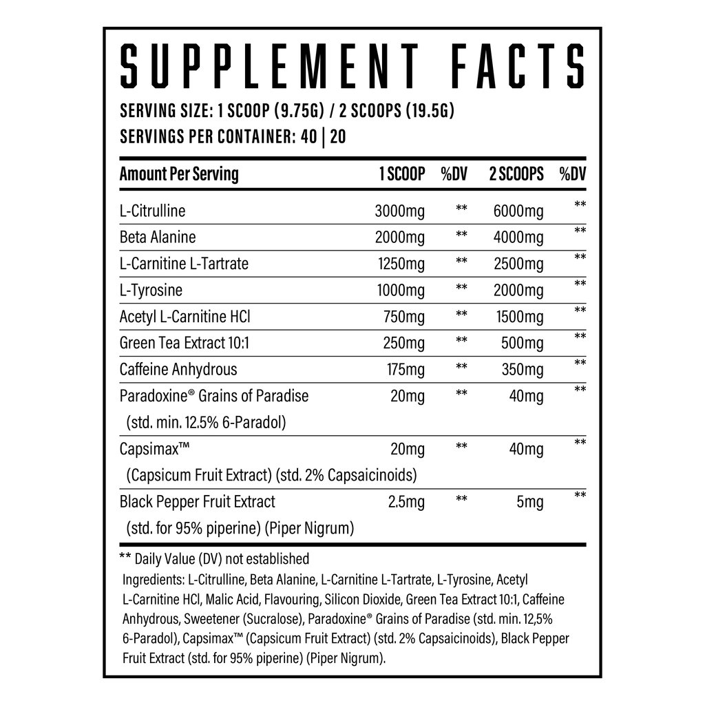 Alle Inhaltsstoffe in Wrecked Inferno wirken synergetisch, um Ihr Training zu optimieren. Erleben Sie die Wirkung unseres thermogenen Kraftpakets – machen Sie sich bereit zu schwitzen.
